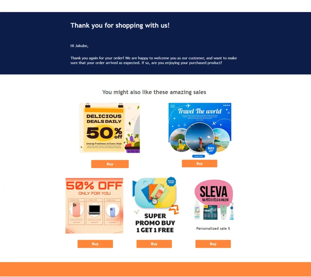 In today’s digital era, customers expect personalized experiences, especially when it comes to marketing campaigns and product promotions. Samba enables such deep personalization in email campaigns by Sale Recommender. This tool allows e-shops to dynamically adjust email content so that each customer sees the most relevant promotions or sales.